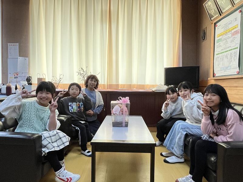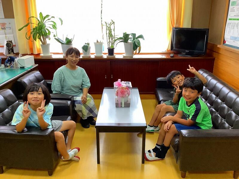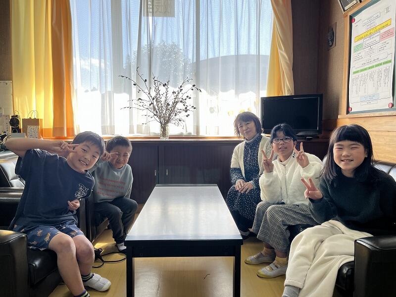 毎月1回、その月の誕生日の子ども達といっしょに校長室で給食を食べています。子ども達も校長室で食べることを楽しみにしてくれているようです。お互いをよく知っている子ども達同士ですが、学年を越えていっしょに給食を食べる機会はなかなかないことです。