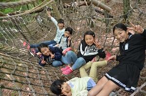 春の遠足 投稿日時 : 2019/05/10 学校管理者 5月10日、春の遠足で池の窪グリーンパークに行きました。まずは、倉の平展望台までバスで向かい、そこから景色を楽しみながら徒歩で池の窪に行きました。着いてからは、グループに分かれてアスレチックに挑戦!揺れるロープや丸太の上をお互いに励まし合いながら、勇気を出して進んでいきました。午後からは、広場で野球やバレー、草スキーなど学年の壁を越えて遊んでいました。天気にも恵まれ、素晴らしい遠足になりました。