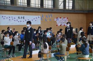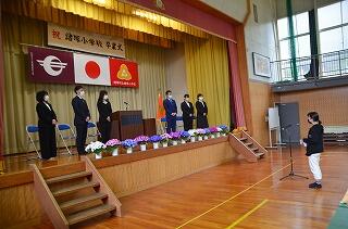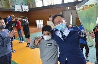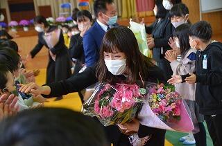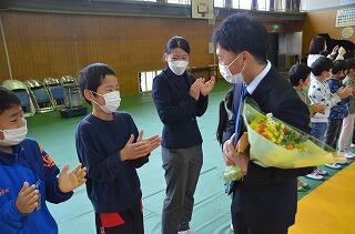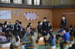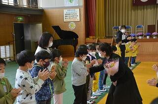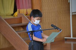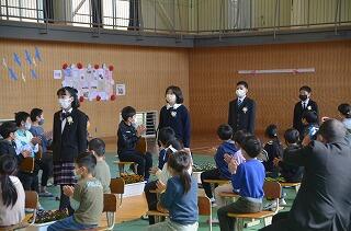 修了式後に、転校・転園で諸塚を離れるお友達が、お別れのあいさつをしました。