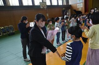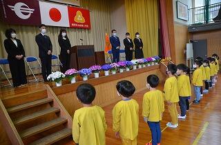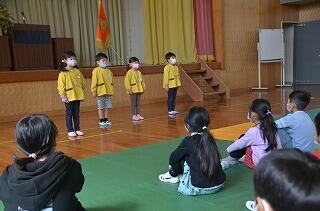 年長(さくら組)6年生不在で少し寂しいなかですが、立派に修了証を代表児童・園児が受け取りました。