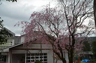 諸塚小学校のシンボルとも言える、校門の「しだれ桜」が満開となりました。