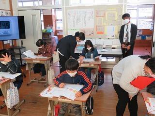 この表彰を通して、2人の児童にはますます自信をもち、更なる意欲をもってほしいと思います。また、表彰を見ていた児童には、自分も何かに頑張ろうという意欲の向上につなげてほしいと思っています。