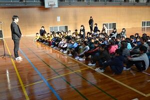 終業式では、子どもたちに、冬休み中にやってほしいことが3つ話されました。