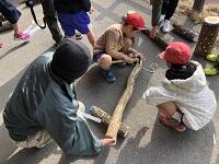 小学生はなれた手つきで次々となば木を仕上げ、初めて体験するさくら組の子のお手伝いも買って出ました。
