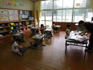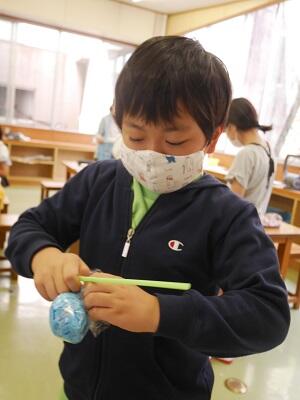 3・4時間目に、1年生も2年生も図工をしていました。
