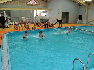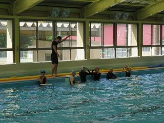 本校は村の室内プールを使いますので天気は関係ないのですが、水温が高くはなかったため最初は寒そうでした。