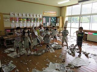 まず、お菓子の箱や画用紙などの紙を破って、様々な形を作りました。