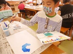 5・6年生は図工で「絵の具でスケッチ」の学習をしました。