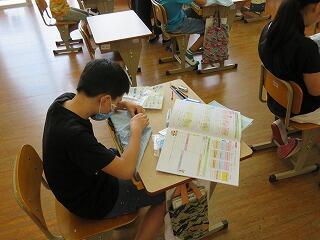 しっかりと読み、分かったことをノートに書いていく姿は大変落ち着いており、すばらしい集中力です。