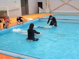 まず、ゲームなどをして体を十分水に慣らしました。
