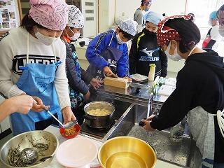 今日、5・6年生が、家庭科の調理実習でご飯とみそ汁を作りました。