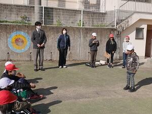 まず、さくら組の園児が、2学期にできるようになったことと3学期に頑張ることを発表しました。