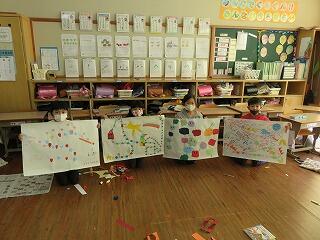 それぞれに熊やへび、カッパ等々の登場人物を考え、楽しいお話やハッピーエンドのお話などを発表してくれました。