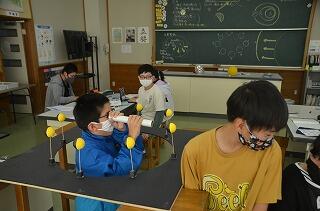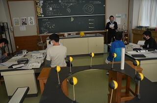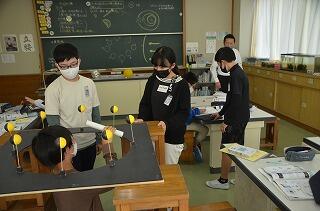 この日理科室では、渡邉教頭先生手作りの立体模型での学習が行われていました。