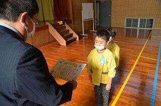 2学期最終日 投稿日時 : 2021/12/24 学校管理者 本日は、令和3年度第2学期の終業日です。幼稚園と合同の終業式を無事行うことができました。幼稚園児は、年長さんが2学期がんばったことを堂々と元気いっぱい発表しました。小学校代表の2年生新名かずきさんは、がんばったことを4つも発表しました。たくさんの行事や日々の学習の中で培った力が、大変立派な終業式の態度に表れていました。2学期大活躍だった子ども達の表彰を行い、1月の市町村駅伝に参加する子ども達を激励しました。