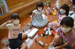 1・2年生が、図工の時間に工作を楽しんでいました。