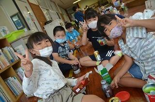 4年生と5年生が、自作のペットボトルロケットを作成しました。