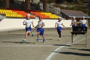 透き通るような青空の下、子どもたちは自分の目標タイム達成に向けて精一杯走ることができました。