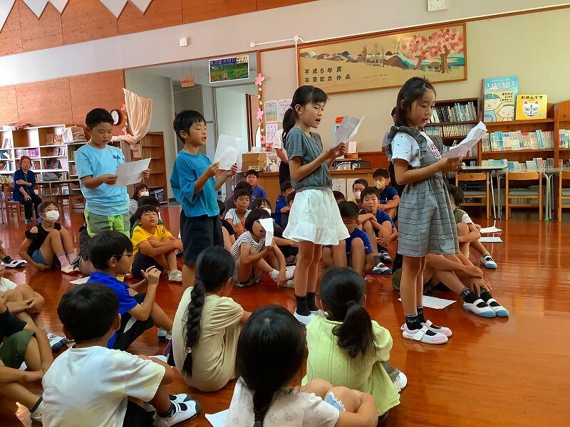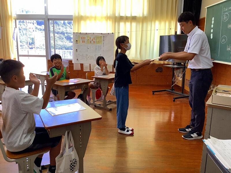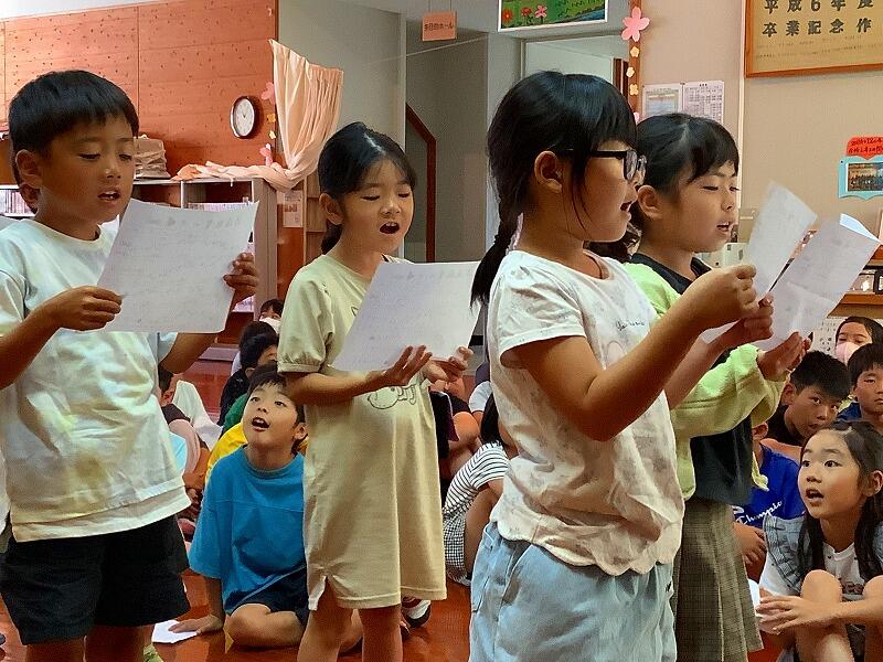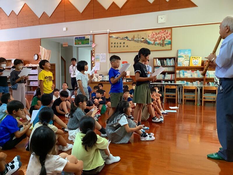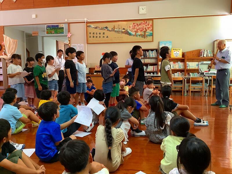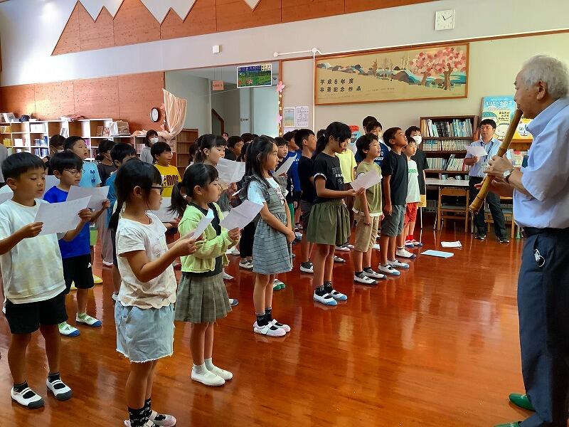 民謡大月会会主の先生においでいただき、全校児童と今回は幼稚園児も含めて、諸塚駄賃付け唄の体験を行いました。また、一人で歌う時間もあり、各学年より挑戦しました。こぶしを意識したり、抑揚を付けたりし、素敵な歌声を聞くことができました。2名の先生も歌声を披露してくださいました。11月15日は村で全国大会があります!