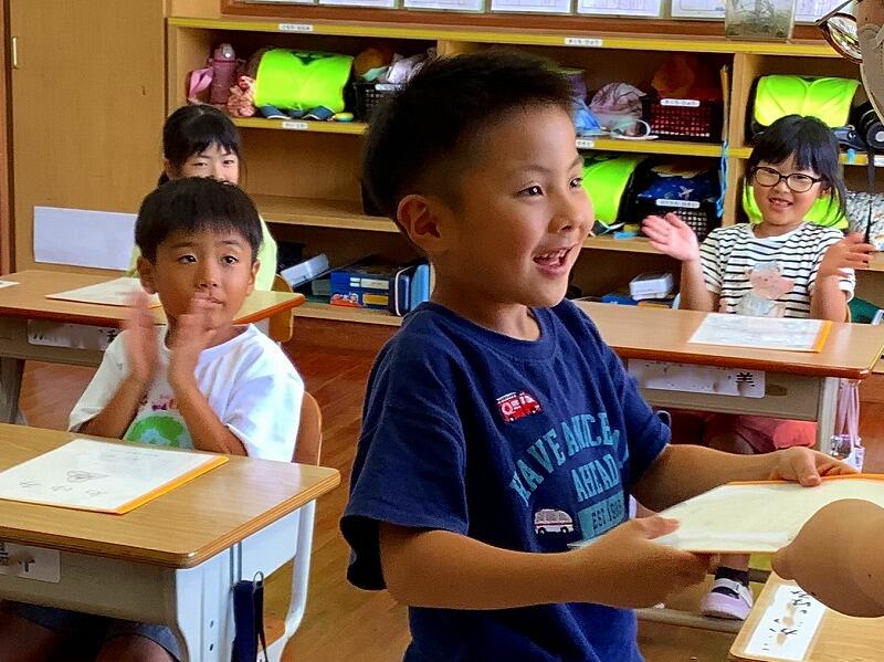 お友達がもらうときは大きな拍手。みんながもらってから一斉に開いて....。とてもいい表情でした。