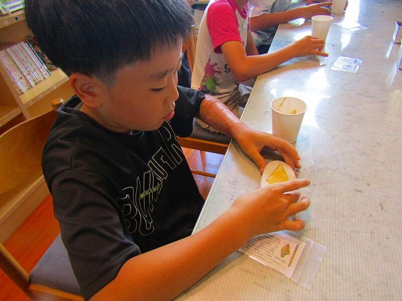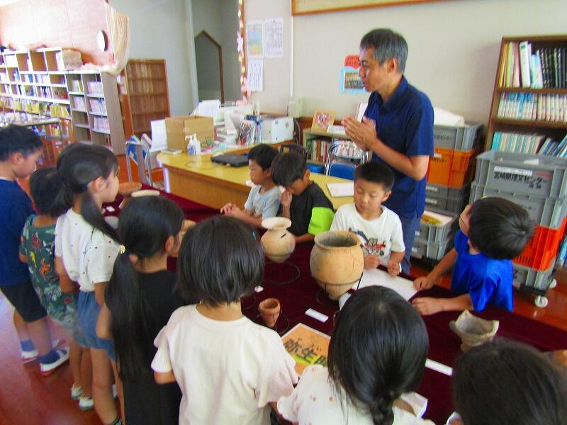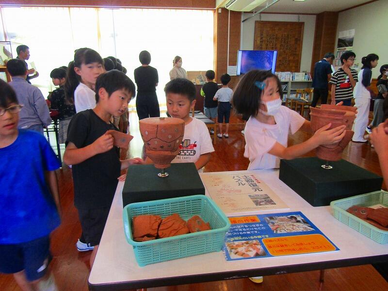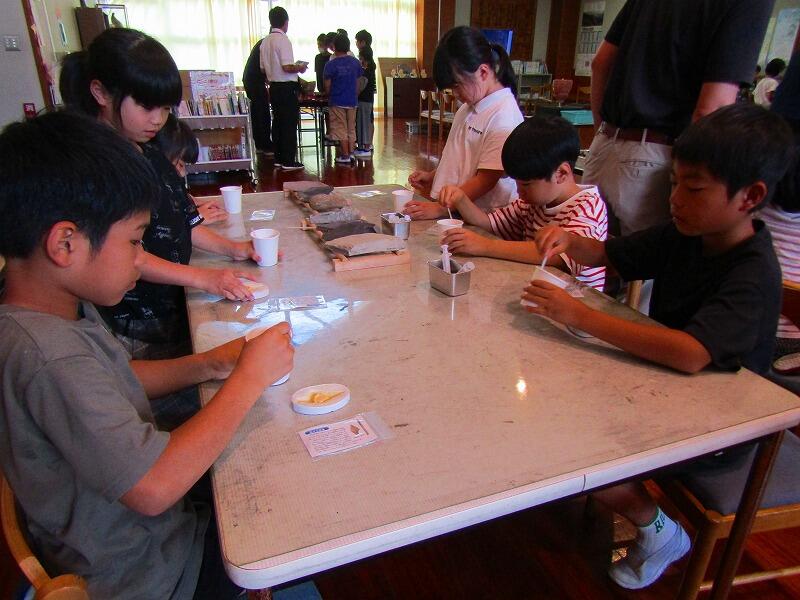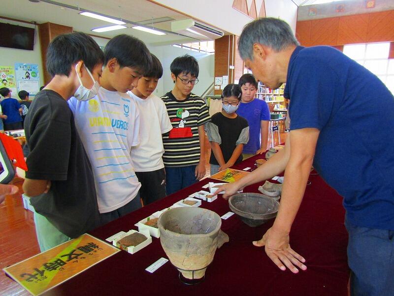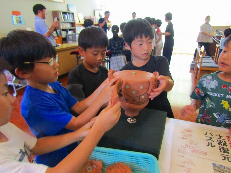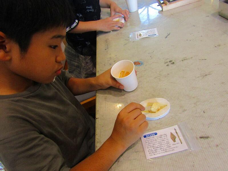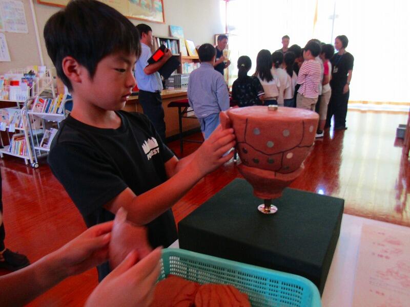 子ども達、生き生きとした目で遺物を見たり触ったり、話を聞いたりし、体験活動を行っていました。
