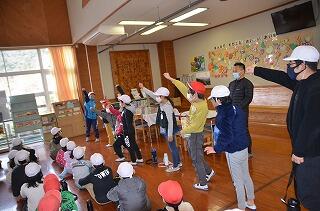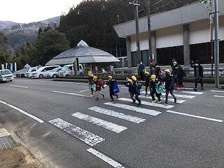 本校は、小学校入学に向けて、年長(さくら組)から小学生と集団登校をしています。