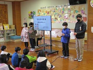 食べられることに感謝 投稿日時 : 2021/01/21 学校管理者 今朝、給食感謝集会を行いました。まず、保健体育委員会の児童が発表しました。食品ロスについてや、まだ食べられるのに捨てられている食べ物の量が612万トンであることなどを発表しました。その後、次のことを当たり前と考えてはいけないと発表しました。 ◯ 毎日、ご飯を食べられるということ ◯ ご飯を作ってくれる人がいるということ ◯ 安全でおいしい食材を作ってくれる人がいるということ ◯ 私たちのところまで運んでくれる人がいるということこの発表には大変考えさせられました。次に、諸塚中の栄養教諭の先生からお話していただきました。栄養素やその役割、献立の工夫について分かりやすく教えてくださいました。また、お願いとして次の2つを言われました。 ◯ 好き嫌いせずにしっかり食べる ◯ よく噛んで食べるよく噛んで食べることは、力が強くなることにつながると教えていただいたので、改めて大切にしていきたいと思います。最後に、感謝のメッセージを贈らせていただきました。これからも感謝の気持ちを大切にして給食や食事をいただきます。