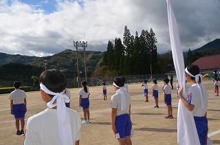 運動会を前に、5・6年生が、神楽保存会の皆さんと合同練習会をしました。