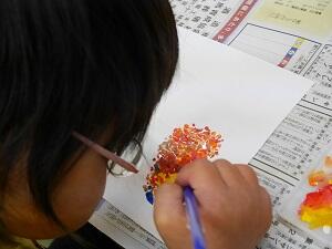 赤やオレンジ、黄色が混ざって、きれいな色使いで描くことができました。