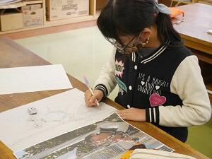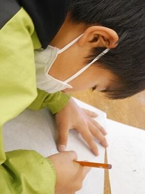 何人かの子どもたちは、下絵も描き終わり、いよいよ版木に転写しました。