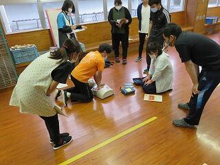 今日は、心肺蘇生とAED使用の訓練を行いました。