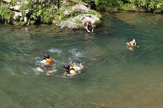 澄んだ川の中で、子どもたちが輝いて見えました。