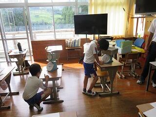 3年生が、算数で「1000gより重い物はどうやってはかればよいのだろう」という学習をしていました。