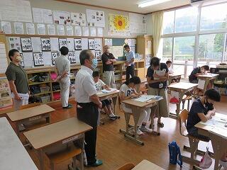 その後の授業参観では、元気よく歌う姿、難しい問題に挑戦する姿、話し合う姿、プログラミングをする姿等を見ていただきました。