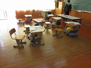 地震に備えて 投稿日時 : 2020/11/05 学校管理者 今日は、県民一斉防災行動訓練「みやざきシェイクアウト」の日で、本校も訓練に参加しました。これは、決められた時刻(本日10:00)に一斉に机の下に隠れるなど身の安全を図る行動を実践し、日頃の防災対策を確認するきっかけづくりにする訓練です。本校では、10:00に地震が発生したと仮定して緊急放送を流し、子どもたちは机の下に隠れました。その後、地震が収まったと仮定して振り返りを行いました。地震はいつ起こるか分かりません。ですから、このような訓練は大切です。 「自分の命は自分で守る」ことができるよう、授業中でも危ないと思ったら自分から机の下に隠れるように指導しています。
