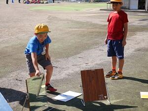 光の性質 投稿日時 : 2020/11/05 学校管理者 3年生は理科で、「光のせいしつ」の学習をしています。鏡を使って、日光を反射させたり、集めたりして、光の性質について調べています。「日光を集めたら、明るさや温かさはどう変わるのだろうか。」という学習課題に対し、子ども達は予想を立てて実験に臨みました。子ども達の予想は、「冷たくなる」「ぬるいまま(変わらない)」「温かくなる」の3通りがでて、実験をするまでドキドキでした。鏡の数を、0枚→1枚→2枚・・・と増やしていくにつれ、明るさも温かさも増していき、子ども達も、とても盛り上がりました。