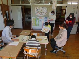 研究授業2 投稿日時 : 2020/11/06 学校管理者 昨日、スマイル学級の研究授業がありました。生活単元「誕生会をしよう!」の学習で、「のせたいものをきめて、作りたいホットケーキをはっぴょうしよう」というめあてで授業が行われました。子どもたちは、ホットケーキに乗せる果物を使って発音練習をしたり、楽しそうに数えながら果物をホットケーキの上にレイアウトしたりしました。 そして、おいしそうなホットケーキができあがると、それを見せながら説明してくれました。 楽しい雰囲気の中で、子どもたちが活躍し輝いていました。次は、実際にホットケーキを作ります。できあがりが楽しみです。