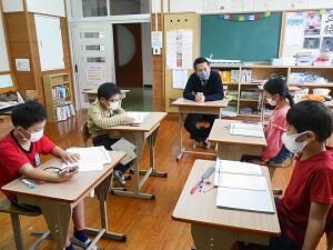 研究授業3 投稿日時 : 2020/11/06 学校管理者 3校時に5・6年生家庭科の研究授業がありました。「食べて元気に」の学習で、今日のめあては「食べ物にふくまれる栄養素とその働きは何だろう。」でした。子どもたちは、まず「炭水化物、たんぱく質、脂質、ビタミン、無機質」の五大栄養素について知り、その体内での働きについて考えました。自分で考えたり、教科書で調べたりしてワークシートにまとめていきます。集中力、調べて書く速さなどはさすが高学年です。班や学級全体の話合いでは、友達の意見をよく聞き、反応し、自分の意見を活発に発言する姿が見られました。今日から食事するときにこの学習のことを思い出し、バランスのとれた食事を心掛けることでしょう。