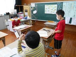 話合い活動 投稿日時 : 2020/11/06 学校管理者 3年生が国語で、「はんで意見をまとめよう」の学習をしました。話合いをして、意見を出したりまとめたりする学習です。今回の話合いの目的は・・・「1・2年生に、体を動かすことの楽しさを知ってもらうために外遊びをしよう。」です。これまでに、子ども達は付箋を使って、意見をまとめたり、進行の練習をしたりして臨みました。今日は、教頭先生に参観していただき、話合いをしました。司会・記録・計時の役割を決めて、進行に沿って話し合いました。一人一人がはっきりと意見を言いながら、意見をまとめることができました。話合いの結果、1・2年生と一緒にけいどろをすることが決まりました。これから、外遊びの準備を進めていきます!!