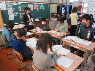 2020年11月の記事一覧 2020年11月 全ての記事 カテゴリ 諸塚村のこと 1年生 2年生 3年生 4年生 5年生 6年生 音楽 M学習 アーカイブ 2025年12月 (5) 2025年11月 (15) 2025年10月 (19) 2025年9月 (16) 2025年8月 (12) 2025年7月 (20) 2025年6月 (23) 2025年5月 (15) 2025年4月 (10) 2025年3月 (4) 2025年2月 (2) 2025年1月 (4) 2024年12月 (3) 2024年11月 (3) 2024年10月 (0) 2024年9月 (4) 2024年8月 (1) 2024年7月 (2) 2024年6月 (3) 2024年5月 (5) 2024年4月 (5) 2024年3月 (5) 2024年2月 (9) 2024年1月 (9) 2023年12月 (2) 2023年11月 (2) 2023年10月 (2) 2023年9月 (3) 2023年8月 (1) 2023年7月 (3) 2023年6月 (4) 2023年5月 (7) 2023年4月 (2) 2023年3月 (12) 2023年2月 (16) 2023年1月 (14) 2022年12月 (12) 2022年11月 (15) 2022年10月 (16) 2022年9月 (14) 2022年8月 (8) 2022年7月 (15) 2022年6月 (13) 2022年5月 (11) 2022年4月 (17) 2022年3月 (23) 2022年2月 (15) 2022年1月 (15) 2021年12月 (22) 2021年11月 (18) 2021年10月 (25) 2021年9月 (26) 2021年8月 (2) 2021年7月 (13) 2021年6月 (34) 2021年5月 (22) 2021年4月 (19) 2021年3月 (52) 2021年2月 (65) 2021年1月 (50) 2020年12月 (62) 2020年11月 (51) 2020年10月 (56) 2020年9月 (58) 2020年8月 (12) 2020年7月 (55) 2020年6月 (58) 2020年5月 (35) 2020年4月 (24) 2020年3月 (10) 2020年2月 (8) 2020年1月 (10) 2019年12月 (8) 2019年11月 (7) 2019年10月 (9) 2019年9月 (9) 2019年8月 (0) 2019年7月 (0) 2019年6月 (5) 2019年5月 (3) 2019年4月 (4) 2019年3月 (6) 2019年2月 (3) 2019年1月 (3) 2018年12月 (4) 2018年11月 (2) 2018年10月 (3) 2018年9月 (5) 2018年8月 (1) 2018年7月 (3) 2018年6月 (3) 2018年5月 (5) 2018年4月 (3) 2018年3月 (4) 2018年2月 (4) 2018年1月 (3) 2017年12月 (3) 2017年11月 (4) 2017年10月 (4) 2017年9月 (5) 2017年8月 (3) 2017年7月 (3) 2017年6月 (4) 2017年5月 (5) 2017年4月 (6) 2017年3月 (9) 2017年2月 (9) 2017年1月 (7) 2016年12月 (10) 2016年11月 (8) 2016年10月 (8) 2016年9月 (4) 2016年8月 (6) 2016年7月 (5) 2016年6月 (3) 2016年5月 (9) 2016年4月 (6) 2016年3月 (9) 2016年2月 (8) 2016年1月 (5) 2015年12月 (14) 2015年11月 (9) 2015年10月 (10) 2015年9月 (10) 2015年8月 (0) 2015年7月 (6) 2015年6月 (7) 2015年5月 (9) 2015年4月 (10) 2015年3月 (4) 2015年2月 (7) 2015年1月 (7) 2014年12月 (9) 2014年11月 (6) 2014年10月 (11) 2014年9月 (11) 2014年8月 (4) 2014年7月 (14) 2014年6月 (10) 2014年5月 (8) 2014年4月 (13) 2014年3月 (13) 2014年2月 (5) 2014年1月 (14) 2013年12月 (6) 2013年11月 (9) 2013年10月 (10) 2013年9月 (13) 2013年8月 (4) 2013年7月 (5) 10件 1件 5件 10件 20件 50件 100件 研究授業3 投稿日時 : 2020/11/06 学校管理者 3校時に5・6年生家庭科の研究授業がありました。「食べて元気に」の学習で、今日のめあては「食べ物にふくまれる栄養素とその働きは何だろう。」でした。子どもたちは、まず「炭水化物、たんぱく質、脂質、ビタミン、無機質」の五大栄養素について知り、その体内での働きについて考えました。自分で考えたり、教科書で調べたりしてワークシートにまとめていきます。集中力、調べて書く速さなどはさすが高学年です。班や学級全体の話合いでは、友達の意見をよく聞き、反応し、自分の意見を活発に発言する姿が見られました。今日から食事するときにこの学習のことを思い出し、バランスのとれた食事を心掛けることでしょう。 話合い活動 投稿日時 : 2020/11/06 学校管理者 3年生が国語で、「はんで意見をまとめよう」の学習をしました。話合いをして、意見を出したりまとめたりする学習です。今回の話合いの目的は・・・「1・2年生に、体を動かすことの楽しさを知ってもらうために外遊びをしよう。」です。これまでに、子ども達は付箋を使って、意見をまとめたり、進行の練習をしたりして臨みました。今日は、教頭先生に参観していただき、話合いをしました。司会・記録・計時の役割を決めて、進行に沿って話し合いました。一人一人がはっきりと意見を言いながら、意見をまとめることができました。話合いの結果、1・2年生と一緒にけいどろをすることが決まりました。これから、外遊びの準備を進めていきます!! またまたおいしい! 投稿日時 : 2020/11/06 学校管理者 写真は、今日の給食です。何に目が行きましたか?ヨーグルトでしょうか?大きいおかずでしょうか?実は、今日は宮崎県産黒毛和牛の牛丼でした。とても柔らかくておいしかったです。しかも、たくさん入っていました。子どもたちも大満足でした。 充実した全校集会 投稿日時 : 2020/11/06 学校管理者 今朝、朝の時間に全校集会を行いました。内容は、表彰とビブリオバトルです。まず、2人の児童が表彰されました。明るい選挙啓発作品コンクール 書道の部で佳作を受賞した女子と、みやざき科学技術人材育成事業「サイエンスコンクール」東臼杵地区審査で最優秀賞を受賞した男子です。この表彰を通して、2人の児童にはますます自信をもち、更なる意欲をもってほしいと思います。また、表彰を見ていた児童には、自分も何かに頑張ろうという意欲の向上につなげてほしいと思っています。 ビブリオバトルでは、放送図書運営委員会の4人が本の紹介をしました。聞いている児童に呼び掛けたり、本を広げて見せたりと工夫して紹介してくれました。堂々と、しかもはっきりとした言葉で紹介してくれたの