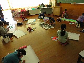 子どもたちは、それぞれにお話やテーマを決め、早速作り始めていました。