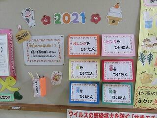 毎月工夫のある掲示で子どもたちが目を留めるのですが、1月はいつもにも増して大人気です。