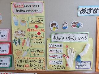その他にも、「免疫力を高める食べ物」や「手洗いの仕方」も掲示してあります。