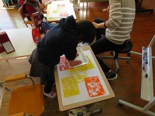 模様ができあがるたびに歓声を上げ、とても楽しそうでした。