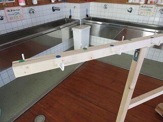 この対策として、教頭先生がハンカチかけを作ってくださいました。