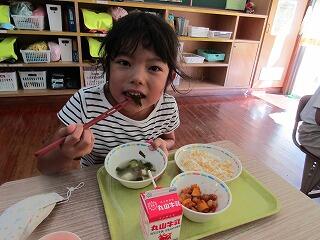 諸塚学校給食の日 投稿日時 : 2021/10/15 学校管理者 今日は、諸塚学教給食の日諸塚産の食材(米・割とうきび・干し椎茸・チンゲンサイ・カラーピーマン)が使われています。また、宮崎県産の養殖真鯛も使われています。1年生の教室!子ども達はおいしそうに食べていました。
