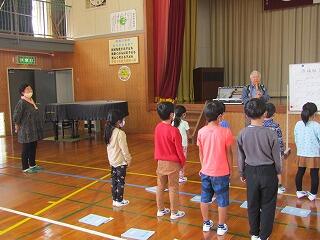 駄賃付け唄の練習 投稿日時 : 2021/10/18 学校管理者 竹中さんと田丸さんが来ていただき、1,2年生に分かりやすく駄賃付け唄の指導をしてくださいました。始める前と後で、子どもたちの唄い方が大きく変わりみんなとっても上手になりました。来年の駄賃付け唄大会が楽しみです。