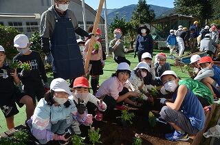 花の苗植え~冬~ 投稿日時 : 2021/10/26 学校管理者 今日は、花の苗植えを行いました。幼稚園生と合同で、小学生がお世話をしながら幼稚園のチューリップの球根を植えました。その後、小学生は、卒業式用の1人人プランターにビオラを植えました。更に!!花壇に「ノースポール」「アリッサム」「ナデシコ」「キンギョソウ」を植えました。学校が一気に華やかになりました。また、この日は、滝の下地区の寿会の方々5名が、苗植えの指導に来てくださいました。お忙しい中ありがとうございました。心をこめて植えた花たちを大切に育てていきたいと思います。