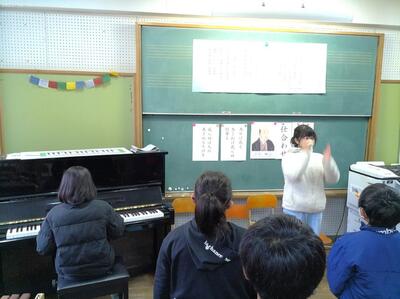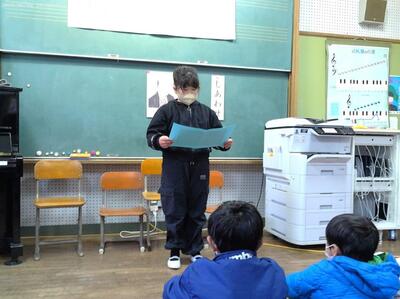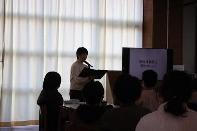 12/22(月)に諸塚小学校にて、本校5・6年生が諸塚小の5・6年生及び諸塚中1年生と一緒に『被爆体験記朗読会』に参加しました。80年前に広島市に落とされた原爆の概要についてDVDで学習した後、広島から来られた講師の先生方から被爆者が書かれた手記や詩を読んでいただきました。原爆のない平和な世界の実現のために、自分たちは何をしなければならないのか、大事なことを学ぶことができました。