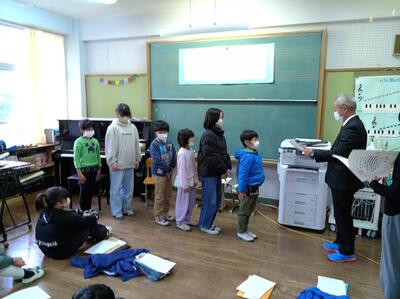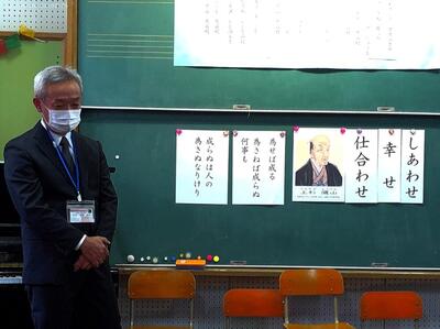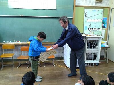 12/3(水)の5時間目に『記紀みらい塾』を行いました。講師の先生は、宮崎看護大学教授の大館真晴先生です。荒谷小の校区内には、『南川神楽』と『戸下神楽』がありますが、「神楽」や「桜」の意味、「神楽」と「稲作」が深い関わりがあることなど、大館先生のお話は、子どもたちにも分かりやすく、大変興味深い内容でした。質問コーナーでは「日本にはいくつの神楽があるのですか?」「どんな種類の神楽があるのですか?」「何分くらい舞うのですか?」「こども神楽があるのはどうしてですか?」「神楽はどうして男の人だけなのですか?」・・・たくさんの質問が出ました。地元に神楽が残っており、自分たちも運動会等でこども神楽を舞っているため、今回の『記紀みらい塾』を受講したことで神楽が一層身近に感じることができたのではないかと思います。